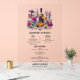 Celebra a tu boda en un auténtico estilo de fiesta con este vibrante cartel de cócteles, que incluye una divertida mezcla de flores brillantes, un taco, anillos de diamantes y una botella de tequila con un refrescante cóctel de margarita. El diseño, claro y transparente, aporta un toque moderno al tiempo que mantiene vivo el ambiente festivo. Ideal para tomar una bebida especial en un boda mexicano o en un fiesta margarita.