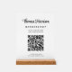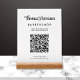 Signo moderno de tabletas acrílicas blancas con tu nombre en un guión elegante de firma y tipo de negocio con letras simples. Ingresa tu dirección de sitio web para crear un código QR escaneado para que clientes y clientes vean tus productos, servicios, horas, etc.