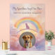 The reflective acrylic captures light beautifully, while the soft watercolor Rainbow Bridge sky and golden tones evoke serenity and love.