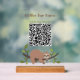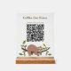 The sleek wood-base pedestal provides a sturdy, professional look that fits seamlessly into modern, rustic, or botanical-themed cafes. Simply replace the placeholder QR code with your own link to create a functional piece of decor that enhances the customer experience and keeps your service fast—even if your mascot is slow!