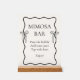 Completa tu tema de despedida de soltera "tying the knot" con este elegante letrero acrílico personalizado para Bar de Mimosa con Lazo Negro. Diseñado para combinar con el tema de despedida de soltera "shes tying the knot" en negro y blanco, este letrero es un toque elegante para tu celebración. Perfecto para mostrar tu estación de bebidas, complementa las ideas de despedida de soltera "tie the knot" en negro. Ya sea que estés planeando el tema de despedida de soltera "shes tying the knot" o necesites ideas para "tie the knot", este letrero chic realza tu tema de despedida de soltera "tying the knot" en negro.