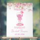 Celebre su fiesta de despedida de soltera con estilo con nuestra Señal de bienvenida con pétalos florales rosados y prosecco. La plantilla presenta un hermoso diseño con un diseño de acuarela floral de rosa rosa en la parte inferior y un vaso de prosecco rosa adornado con flores rosas que simbolizan la celebración, el encanto y la elegancia.