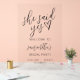 Texto mínimo de escritura que dijo Sí Señal de bienvenida de ducha de novia, El moderno Rótulo de ducha de novia Minimalista presenta un hermoso guión y un toque de caligrafía junto con el tipo de letra serif para crear un hermoso y limpio signo de novia simple.