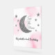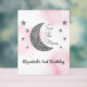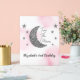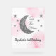 ¡Dos de la luna! 2.º cumpleaños con luna de plata y estrellas con fondo de color de agua rosa