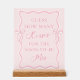 Agrega un toque divertido a tu tema de shower de boda con lazo con este letrero de acrílico personalizado rosa "Adivina cuántos besos". Una adición perfecta para tu tema de shower de boda de "atar el nudo", este letrero de juego mantiene a los invitados entretenidos mientras celebran a la futura novia. Con un diseño rosa chic, es ideal para ideas de shower de boda rosadas. Es imprescindible para el tema de shower de boda de "ella está atando el nudo", lo que lo convierte en una elección elegante para ideas de shower de boda de "atar el nudo" y un hermoso centro de mesa para shower de boda rosa.