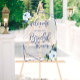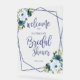 Señal Acrílica Duste Blue Floral Bridal Shower Bienvenida