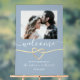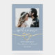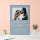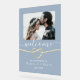 Bienvenido a nuestros huéspedes con gracia y estilo usando nuestro minimalista símbolo de boda acrílico azul polvoriento. Decorado con una foto de la pareja, un romántico corazón de una cuerda dorada y un moderno guión escrito a mano, encarna la elegancia moderna y el encanto personal.