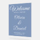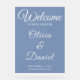 This dusty blue wedding welcome sign combines soft tones with elegant serif fonts for a refined look. A beautiful match for coastal, modern, or formal weddings. Personalize with your names, date, and venue in just a few clicks.