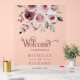 Elegant wedding welcome sign featuring beautiful flowers and modern typography.