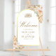 Amaze your guests with this elegant wedding welcome sign featuring beautiful pastel flowers and dried palm leaves.