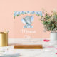 Señal Acrílica Elefante, Flores azules, Baby Shower Momosa Bar