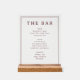This elegant wedding menu design exudes sophistication with its clean, minimalist layout and classic typography. The maroon accents against a crisp white background create an inviting yet refined atmosphere, perfect for a formal celebration. Featuring a simple list of beverage options, the design maintains a timeless appeal that complements any upscale event. Ideal for couples seeking a touch of understated elegance, this menu effortlessly blends functionality with style, ensuring it stands out on your special day.