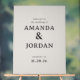 This elegant wedding sign features a minimalist design with clean, sophisticated typography that exudes timeless charm. The monochromatic color palette creates a classic and refined look, perfect for setting the tone at your special event. With its simple yet stylish presentation, this sign is ideal for welcoming guests to a memorable celebration, adding an air of understated elegance to any venue. Its customizable text area allows you to personalize it effortlessly for your big day.
