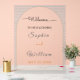 "Welcome your guests in style with this elegant and modern clear acrylic wedding sign. Featuring a beautiful arched design and sophisticated script typography, this sign is perfect for modern, minimalist, or classic wedding themes. The clear pedestal sign creates a stunning floating effect that complements any venue decor. Easy to customize with your names and wedding date."