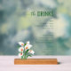 This acrylic sign features a minimalist and elegant design, showcasing a vertical layout with the title "the DRINKS" in an eye-catching script font. The color palette includes vibrant green text on a clean white background, complemented by a realistic illustration of white calla lilies with green stems. Organized into sections for beer, wine, and spirits, the sign uses a consistent sans-serif font to list various drink options, creating a sophisticated and inviting atmosphere perfect for enhancing any bar or entertaining space.