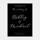 Create your own acrylic wedding sign featuring custom names, date and other wedding details in black and white color elegant script calligraphy and modern serif typography. A sleek and minimalist way to greet guests on your special day.
