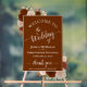 Welcome your wedding guests with this beautiful acrylic sign. The rustic boho chic floral design features elegant script calligraphy with delicate swashes or flourishes on the ends of the letters along with your names in white print on a deep rust orange or burnt umber colored background. The center text area is surrounded by a transparent border with hand painted watercolor roses and garden greenery in autumn shades of rust, sienna, and peach. Beautiful way to welcome your guests while adding beauty and style to your event.