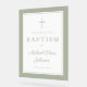 Elegant Sage Green Cross Boy Baptism Welcome Acrylic Sign.