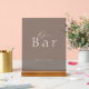 Elegant acrylic Open Bar wedding sign featuring a modern taupe background with soft ivory typography. This minimalist acrylic sign is perfect for wedding receptions, cocktail hours, and drink stations.