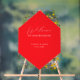 Greet your guests with this stunning acrylic wedding sign, featuring a vibrant border of wild blooms around a striking red hexagonal design. Personalize it with your names and wedding date for a truly bespoke touch. This elegant and contemporary welcome sign beautifully combines modern aesthetics with the charm of nature, setting the perfect tone for your special day."