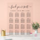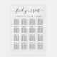 Elegante gráfico de asientos boda firma acrílico transparente para hasta 16 mesas con "encontrar tu asiento" en un guión de moda con chispas y tus nombres y fecha boda unidos por un corazón en una simple tipografía moderna.