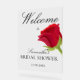 Elegante letrero de bienvenida de Baby Shower en acrílico con rosa roja en acuarela. Es muy fácil de personalizar, con detalles de tus datos personales.