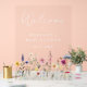 Bienvenido a su ducha de bebé de primavera o verano con estilo, con este elegante símbolo de bienvenida de la marca de bienvenida de la sombrilla de la ducha acrílica de flores silvestres. El signo acrílico transparente muestra el nombre de la futura madre y la fecha con un borde de flores silvestres acuáticas y follaje en el fondo del diseño en tonos rosas, amarillos, púrpura, azul y verde. Este cartel de bienvenida a una ducha de flores silvestres es perfecto para ver en la ducha de bebé de primavera o verano.
