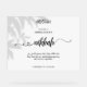 Elegante Signo de Bienvenida Nikkah Personalizado - Decoración Boda islámica negra y gris. Bienvenido a sus huéspedes con elegancia atemporal y belleza artística usando nuestro Rótulo Acrilico Boda Personalizado. Este impresionante diseño combina el minimalismo moderno con el encanto tradicional, con las delicadas sombras de un largo follaje en gris suave (#dfdfdf) sobre el texto negro clásico. La palabra "Nikkah" se muestra en un elegante guión de escritura a mano, con movimientos artísticos que se extienden a los bordes, incluyendo un corazón de amor único y cursi, creando un punto focal cautivador. Los nombres de la novia y del novio están escritos con un elegante tipo de letra Folio, mientras que la traducción al inglés del dúo se muestra en el tipo de letra romana de Caslon para una armoniosa mezcla de simplicidad y sofisticación. Este diseño único está disponible exclusivamente en Zazzle y ofrece cuatro opciones de fondo cuidadosamente seleccionadas para cualquier tema boda: 1. Blanco - Un clásico atemporal para una simplicidad limpia y elegante. 2. Marfil suave (#f4f1e9) - Añade calidez y refinamiento para un lujoso look. 3. Gris claro (#e8e6e3) - Un tono moderno y subestimado para la sofisticación contemporánea. 4. Apenas Rubor (#f7ecea) - Romántico y suave, ideal para un sutil pop de color. Personalización simplificada: personaliza fácilmente el texto y los colores de fuente en línea para alinearse con la estética de su boda. Para mayor personalización o solicitudes especiales, siéntete libre de contactar - ¡siempre estoy feliz de ayudar a traer tu visión a la vida! En el corazón del diseño: la dua islámica (Ref. Abu Dawud, Ibn Majah y At-Tirmidhi): بَ・لّٰ・・・ كَ・・・・・・ Burn, Burn Esta complicación sincera, mostrada tanto en árabe como en inglés, agrega profundidad espiritual y significado a tu día especial. Por qué este Rótulo es perfecto para ti: - Elegancia a medida: Personalízalo con tus nombres y la fecha Nikkah (Hijri y Gregoriano) para crear un conservador significativo. - Diseño único: con torres intrincados, sombras delicadas de follaje y fuentes premium, este diseño es diferente de cualquier otra cosa en Zazzle. - Opciones de visualización versátiles: Ideal para comensales, marcos o montaje en pared, que complementan los locales bodas tradicionales y modernos. - Querido Keepsake: Después de la ceremonia, transforme el lugar en una elegante decoración casera que conmemora la unión con gusto. Características del producto: - Dimensiones: 45,7 cm de ancho x 61 cm de alto (18" de ancho x 24" de alto) - Material: Premium acrílico transparente de 1,5 mm de grosor - Opciones de fondo: blanco, marfil blando, gris claro o Rubor insignificante - Impresión: impresión de lado inverso para un acabado elegante y pulido - Instrucciones de cuidado: limpiar con un paño de microfibra; Este elegante signo de bienvenida Nikkah es más que una decoración simple, es una declaración sincera de tu amor, fe e individualidad. Ya sea que te prepares para tu gran día o que entregues este letrero a un ser querido, su mezcla de tradición islámica y diseño contemporáneo le garantiza una impresión duradera. Desde ceremonias íntimas de jardín hasta grandes salones de banquetes, este cartel complementa cualquier lugar y estilo, ofreciendo una elegancia inigualable y un toque personal. Ordene ahora crear una pieza central que garantice recuerdos inolvidables e impresiones duraderas. Perfecto para bodas islámicos, ceremonias Nikkah, Walima y celebraciones de hitos, este signo es la mezcla perfecta de arte y significado.