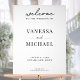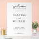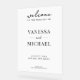 Cartel de bienvenida boda con elegante diseño de tipografía moderna en color blanco y negro.