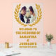 Glamorosa y elegante corona de oro Foto boda bienvenida símbolo de acrílico esmerilado. Utilice las herramientas de plantilla en línea para agregar su propia foto. LA FOTO DE LA MUESTRA NO ESTÁ INCLUIDA. SUSTITÚYASE CON SU PROPIA FOTO ANTES DE PEDIRLA. Los diseños son ilustraciones/gráficos impresos planos. #zazzlemade #boda #foto #cartel de bienvenida #gold #wreath moderno #elegante #elegante #frosted #Rótulo acrílico #Rótulo de bienvenida acrílico