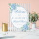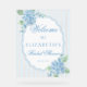 Un diseño clásicamente elegante y vintage inspirado en la estética de un jardín inglés victoriano. Delicadas hortensias azules en acuarela y olvídame-no flores encantadoras están dispuestas contra rayas preppy suaves azules con un marco ovalado de mano alzada con festones.