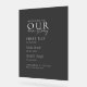 Elegante, clásico, negro transparente, Boda "Bienvenido a nuestra historia de amor" con sus nombres y fechas! Rótulo acrílico. PRIMER DÍA - SÍ DÍA - ¡MEJOR DÍA! Esta exquisita pieza está diseñada para elevar el ambiente de su día especial con su elegancia atemporal y sus características de personalizable. Las parejas pueden añadir sus monogramas, nombres y fechas bodas para hacer su decoración verdaderamente única y que refleje su historia de amor. Ya sea que se muestre en la entrada de su recinto o como punto central de la recepción, este toque personalizado dejará una impresión duradera a sus huéspedes. Crea un ambiente inolvidable para el día de bodas con nuestro Boda Elegante, Blanco y Mínimo "Bienvenida al Rótulo Acrílico". Compra ahora y añade un toque de refinamiento a tu día especial.