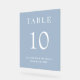 Señal Acrílica Elegante Dusty Blue Wedding Número de la mesa de l
