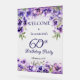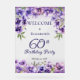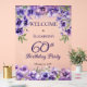 Elegante diseño de color violeta violeta con motivos florales "Fiesta del Cumpleaños 60", con una franja floral superior e inferior de violetas con acentos de polvo blanco.
