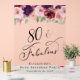 Elegante, claro y acrílico cartel de bienvenida y foto de apoyo para su fiesta de cumpleaños número 80 con "80 & Fabulous" en un guión caligráfico y acuarelas de flores de color rojo burdeos, rosa y violeta con vegetación sabrosa.