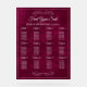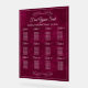 Agregue un toque refinado y moderno a la decoración de su boda con este elegante letrero de cartel de asientos de acrílico. Con un diseño inspirado en terciopelo de rica baya impreso en color completo en acrílico suave, este letrero combina una romántica atemporal con sofisticación contemporánea. La tipografía de letra cursiva elegante, los acentos serif clásicos y los delicados florituras ornamentales crean un aspecto pulido que guía a los invitados sin esfuerzo a sus mesas.