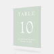Señal Acrílica Elegante Sage Green Wedding Número de la mesa de r