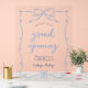 Presenta un elegante diseño de señas de bienvenida transparentes de la gran apertura de negocios, con unas brillantes cintas y un delicado marco en sofisticados tonos azules impresos en un signo acrílico translúcido. Cree un signo profesional para su fiesta de lanzamiento o gran evento de apertura con este diseño de signo acrílico único.