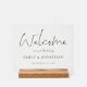 Los Nombres Elegantes De Guión Son La Fecha De Bienvenida Al Boda. Estilo moderno y minimalista. La bienvenida se encuentra en un script de estilo de escritura a mano y personaliza fácilmente el resto del texto según sea necesario.