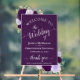 Señal Acrílica Elegantes Rosas Moradas de Bienvenida para Boda Bo