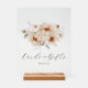 Añada un toque de elegancia a su evento con este Rótulo de tarjetas y regalos de acrílico de diseño. Con un diseño transparente y elegante, con delicados acentos florales y tipografía moderna, se crea un estilo sofisticado y elegante. Perfecto para bodas, recepciones, duchas de novias y celebraciones especiales, este cartel destaca su mesa de regalo mientras realza la decoración de su evento.