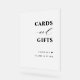 Elegante cartel acrílico boda de "Tarjetas y Regalos" con un estilo sencillo, elegante y limpio con tipografía moderna. 8" x 10" es simplemente nuestro tamaño predeterminado, puede elegir entre varias opciones de tamaño. "NOTA IMPORTANTE: firme en una hoja acrílica de alta calidad con el texto impreso en negro y una mirada falsa escarpada detrás, proporcionando una visión clara del texto en todos los espacios, y dando el llamado escarpado para una fracción del costo! Los tamaños pequeños vienen con un bloque de madera para mantenerse, los tamaños más grandes necesitan un caballete o una superficie para estar de pie, así que no deformarán. Este mismo diseño de signos también está disponible en la opción de impresión poster, que puede encontrar en nuestra colección". Parte de nuestra colección "Minimal, Elegant Wedding and Events Signage" con carteles de coordinación disponibles. Visita toda la colección en: https://www.zazzle.com/collections/119536700311025072