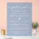 Moda polvorienta señal acrílica azul sin asignar boda de asiento con "Escoge un asiento, a cada lado, te encantan tanto el novio como la novia" y "Bienvenido a nuestra Ceremonia sin plomo" en una mezcla de tipografía blanca simple y un elegante guión blanco con toques, corazón, y tus nombres y fecha boda en elegante tipografía serif blanca.