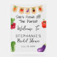Ella es una Señal de Bienvenida de Acrílico para Despedida de Soltera Fresh Off The Market - Da la bienvenida a tus invitados a tu despedida de soltera con estilo con esta Señal de Bienvenida de Acrílico para Despedida de Soltera She's Fresh off the Market. Con ilustraciones de acuarela de frutas y verduras y texto con fuente manuscrita y de guion en un fondo transparente y visible, seguro que impresiona. Edita esta plantilla de señal de bienvenida de despedida de soltera con los detalles de tu evento. Perfecta para una despedida de soltera con tema de mercado de agricultores.