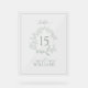Señal Acrílica Escudo verde sabio Monograma Boda Número de tabla
