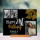Feliz 21er cumpleaños Foliage de oro 3 foto de fondo impresa en Wood Block. Celebra un hito en estilo con este elegante Rótulo de cumpleaños 21 Black & Gold. Con un sofisticado fondo negro adornado con lujosos folletos dorados, este diseño le da un toque de clase. Personalizado con tres fotos, este cartel es perfecto para hacer que el invitado de honor se sienta especial. ¡Hacer que el 21 sea inolvidable con este diseño atemporal y de moda!