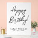Crea tu propio signo de cumpleaños personalizado con un guión moderno caligrafía feliz cumpleaños y un nombre de tipografía mínimo y diseño de fecha para una decoración personalizada de cumpleaños.
