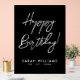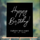 Crea tu propio signo de cumpleaños personalizado con un guión moderno caligrafía feliz cumpleaños y un nombre de tipografía mínimo y diseño de fecha para una decoración personalizada de cumpleaños.