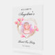 Rótulo acrílico Fiesta de té de novia con tetera de oro rosa, corazón floral y salpicaduras de color rosa. También se puede utilizar para la ducha de bebé, el boda, la ducha de pareja, el cumpleaños. Cambiar el texto mediante la opción de personalización de esta plantilla. Para obtener cambios adicionales en el estilo y color del texto, utilice la opción personalizar adicional.