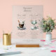 Esta impresionante suite boda presenta una temática rústica de invierno con abetos y escenas nevadas de bosques en una paleta de colores que va desde sabios suaves hasta verde profundo del bosque. Se muestra aquí con un fondo optativo, semitransparente, con un aspecto de vidrio esmerilado. Esta señal de acrílico de "Bebidas Firmas", que coordina, continúa con el tema del invierno con las bebidas adornadas con estribos de abeto y una selección caliente y fría etiquetada como 'Ella está caliente' y 'Él es Guay'. Añade tus recetas de bebida, nombres y fecha de boda usando la plantilla proporcionada. Busque ID1049 para ver todos los productos de este conjunto de bodas.